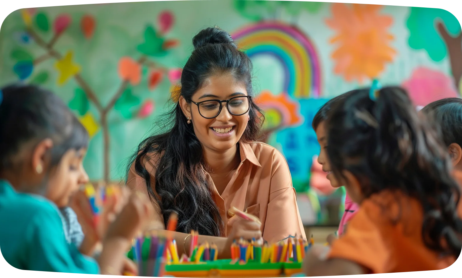 - Visual timing: Is minimised here, but we develop conversations with the kids helping and understanding their skills and interest. This helps us identify the inborn talent of the kid and help them enhance the same.